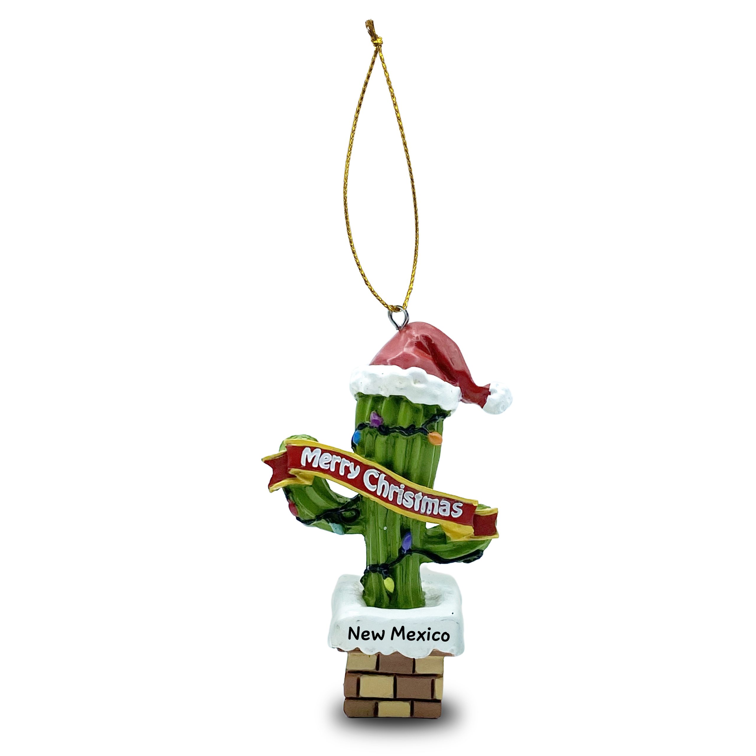 New Mexico – Santa Hat Cactus – “Merry Christmas” – Resin Ornament