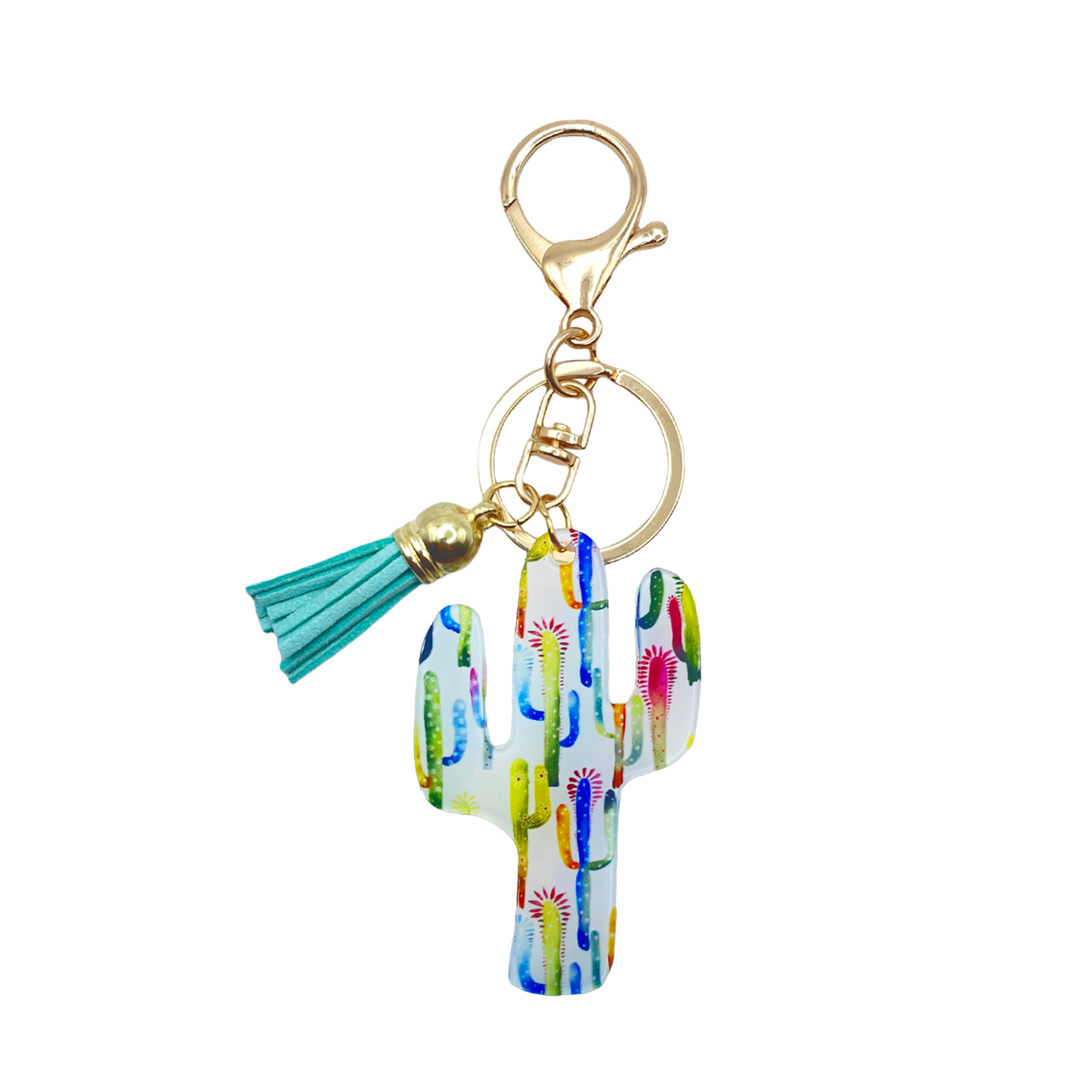 Watercolor w "ARIZONA" - Acrylic Cactus Bag Charm/ Key Chain